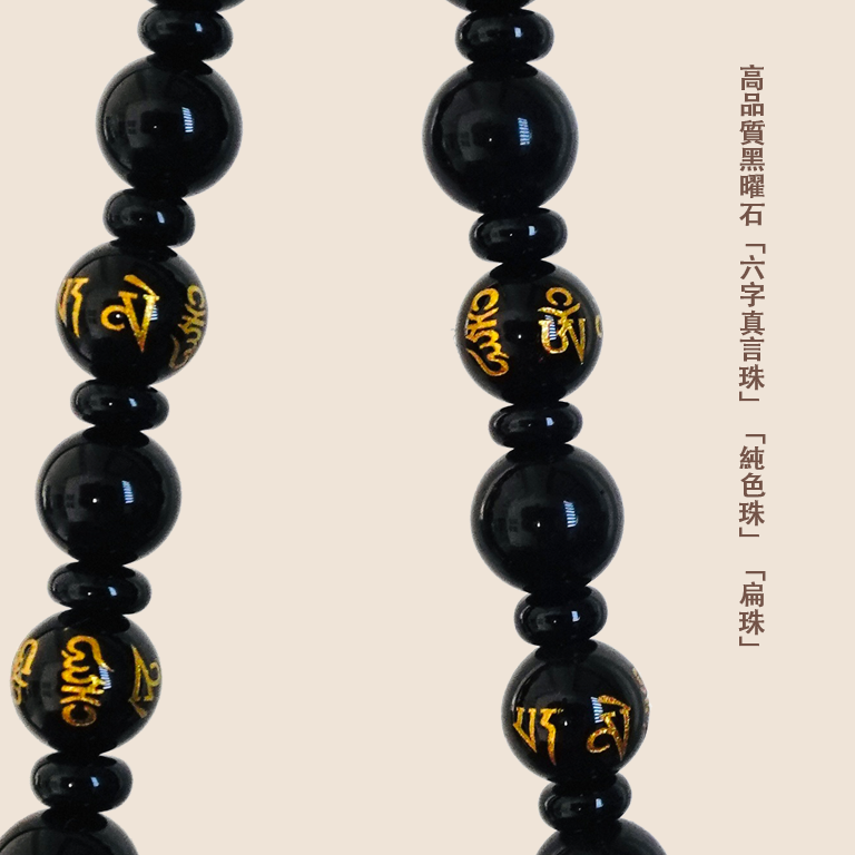 雲星定製珠手機鏈 - 黑曜石款 - 平安健康符搭配六字真言