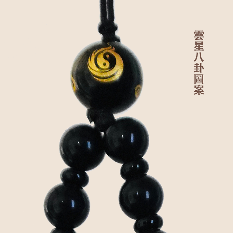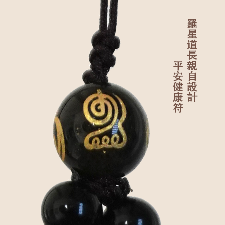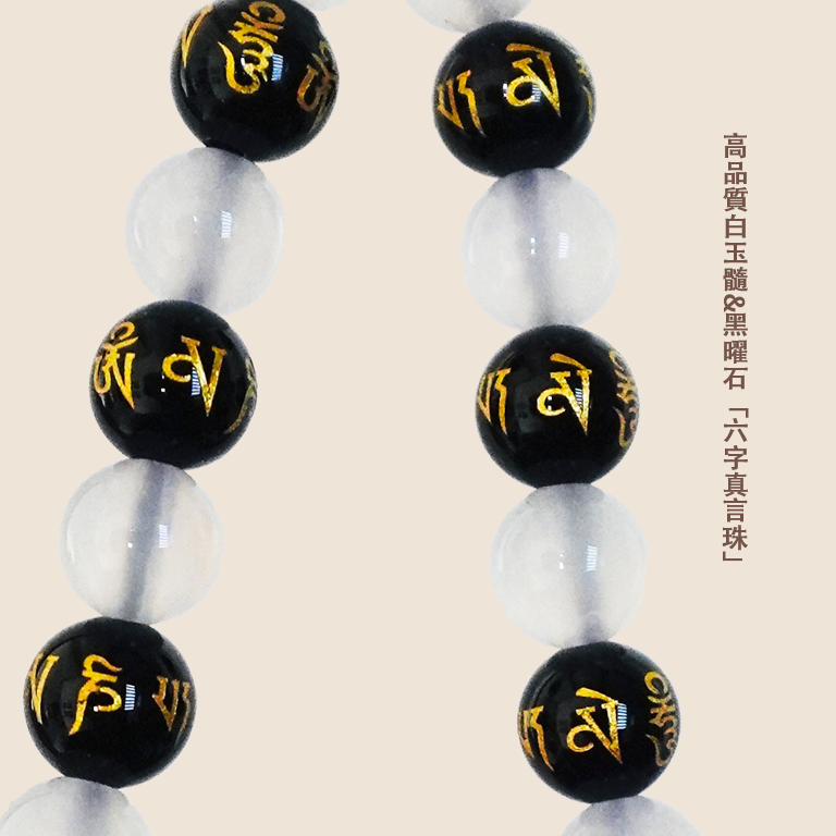 雲星定製珠手機鏈 - 黑曜石搭配白玉髓 - 平安健康符搭配六字真言